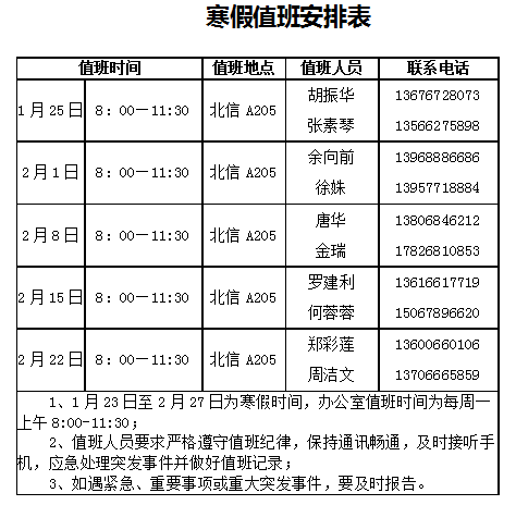 寒假安排值班表