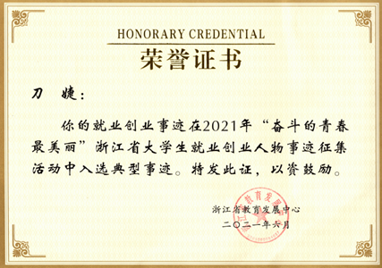 近日,2021年“奋斗的青春最美丽”浙江省大学生就业创业人物事迹征集评选结果正式揭晓,银河赌场-澳门银河赌场官网