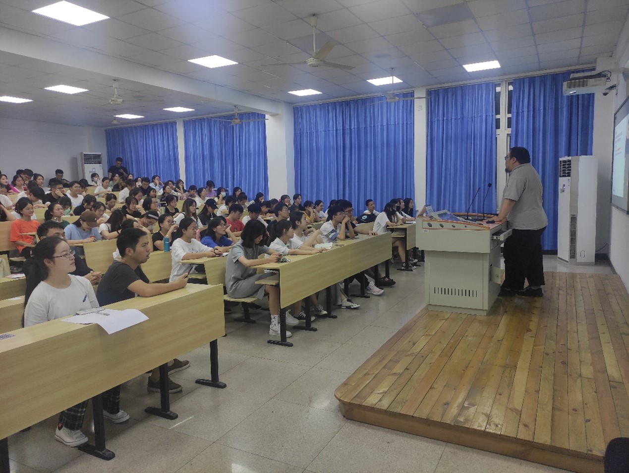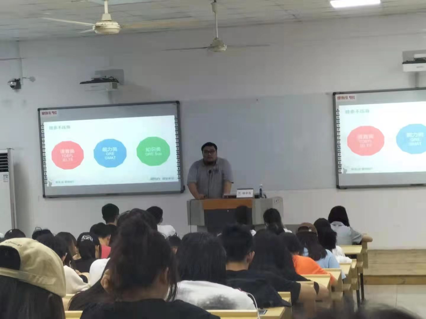 为了进一步拓展当代大学生的国际视野,提高学生升学质量,帮助学生提前做好留学规划,以实现名校梦想,9月8日晚上,我院在301阶梯教室举办以“高分锦鲤——英语能力提升”为主题的出国深造专题讲座。来自各个年级的学生参加了此次活动。讲座由新东方国际教育培训事业部产品研发总监姚宇西老师主讲。