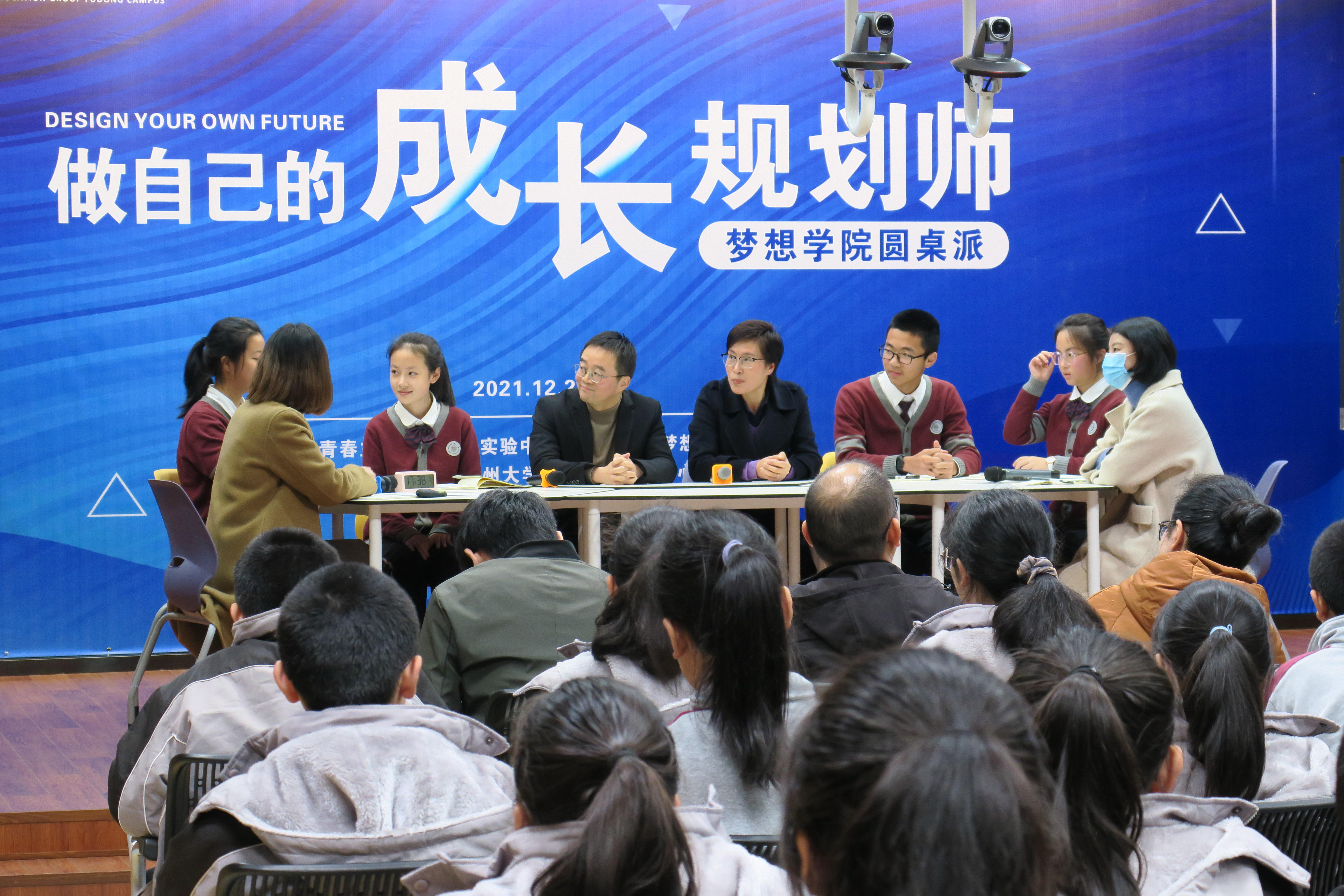 “为了梦想,我选择良性内卷。”“学习带给我快乐,教会我执着,我拒绝躺平!”“双减自由了,但同学们更应该做到双增,一增对自我与未来的认识,二增对当下与未来的行动”……平等视角、真诚对话、智慧分享,12月21日下午5点,在温州市实验中学府东分校开展了一场别开生面的圆桌对话——《做自己的成长规划师》,府东分校的四位少年与梦想导师们一起,聚焦中学生生涯规划,以圆桌派的形式共话“双减政策下如何做自己的成长规划师”。银河赌场-澳门银河赌场官网