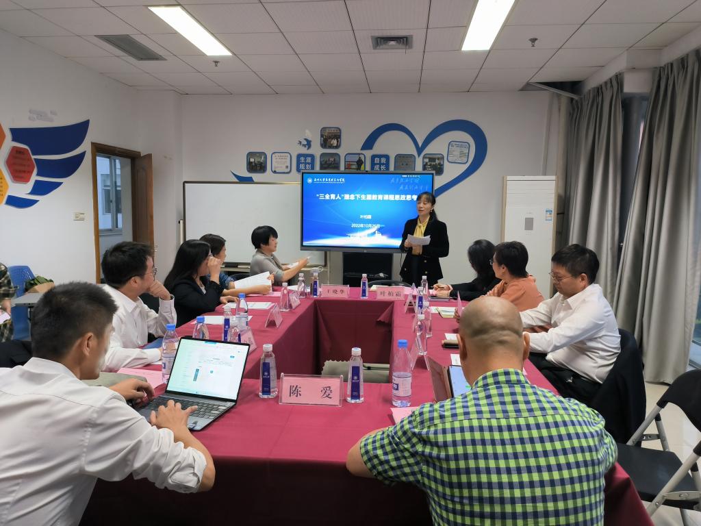 党委副书记叶柏霜作《“三全育人”理念下生涯教育课程思政思考》的专题分享。她认为,生涯教育和课程思政具有天然融合优势,因为大学生职业生涯教育本就具有 “三全育人”的内涵,课程每一部分都蕴含着思政元素,而且师资队伍为课程思政提供了坚实基础。基于此,她强调,要深挖思政元素,合理设置课程思政教学内容,把理想信念和职业理想、奉献社会的职业道德、爱岗敬业的职业精神等融入职业生涯教育全过程。她指出要多措并举创新课程思政教学方法,积极探索互联网+、翻转课堂、慕课等多种教学手段,增加情景模拟、问题教学等教学方式方法;多用案例式教学,打破“你讲我听”的被动模式,通过学生独立思考, 寻求共识,获得启发;多用互动式教学,采用课上课下、竞赛教学,校友进课堂等方式,增加课程感染力。