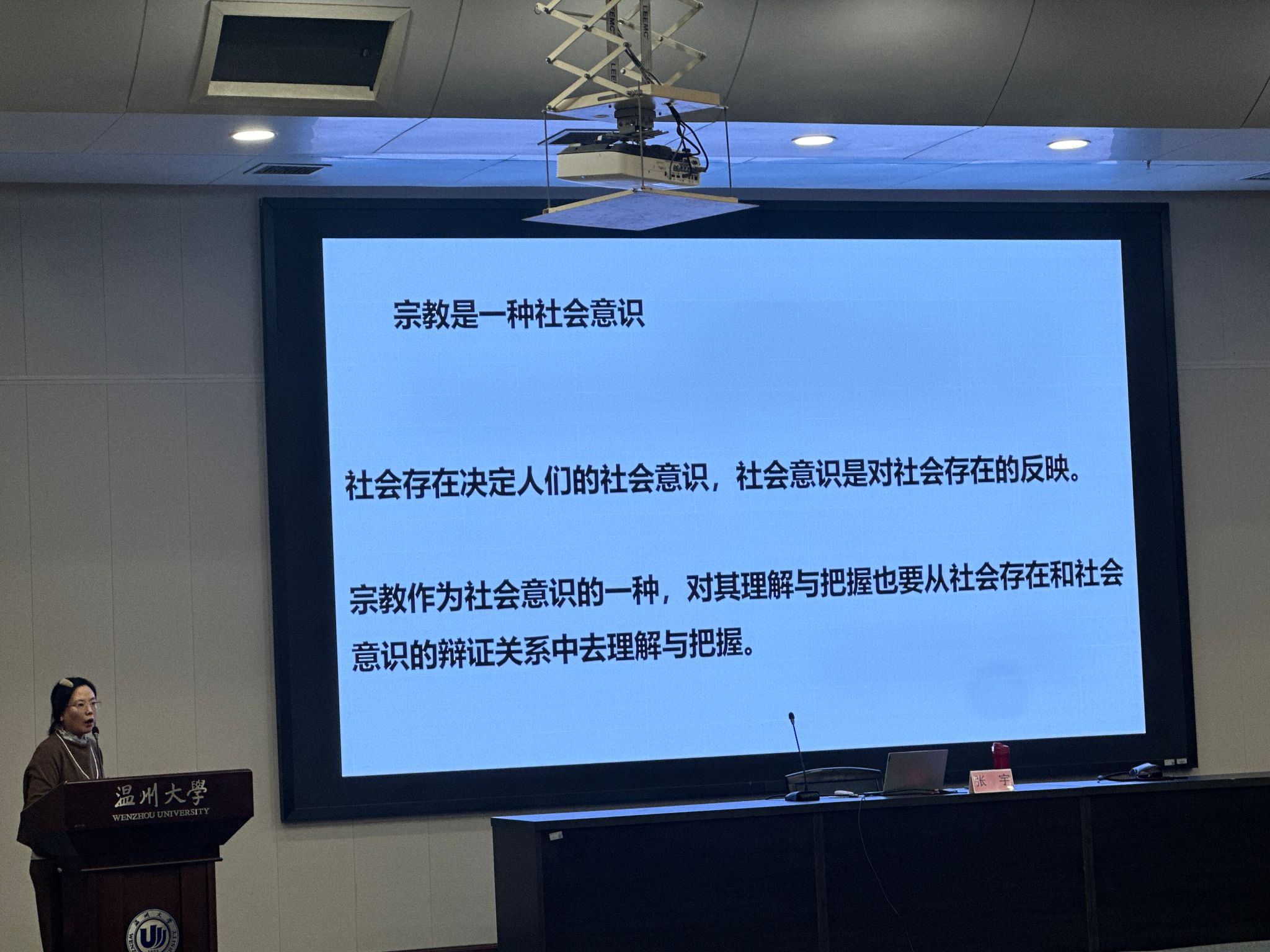 张宇老师在北校区信息报告厅为同学们带来题为《马克思主义宗教观》的专题讲座。