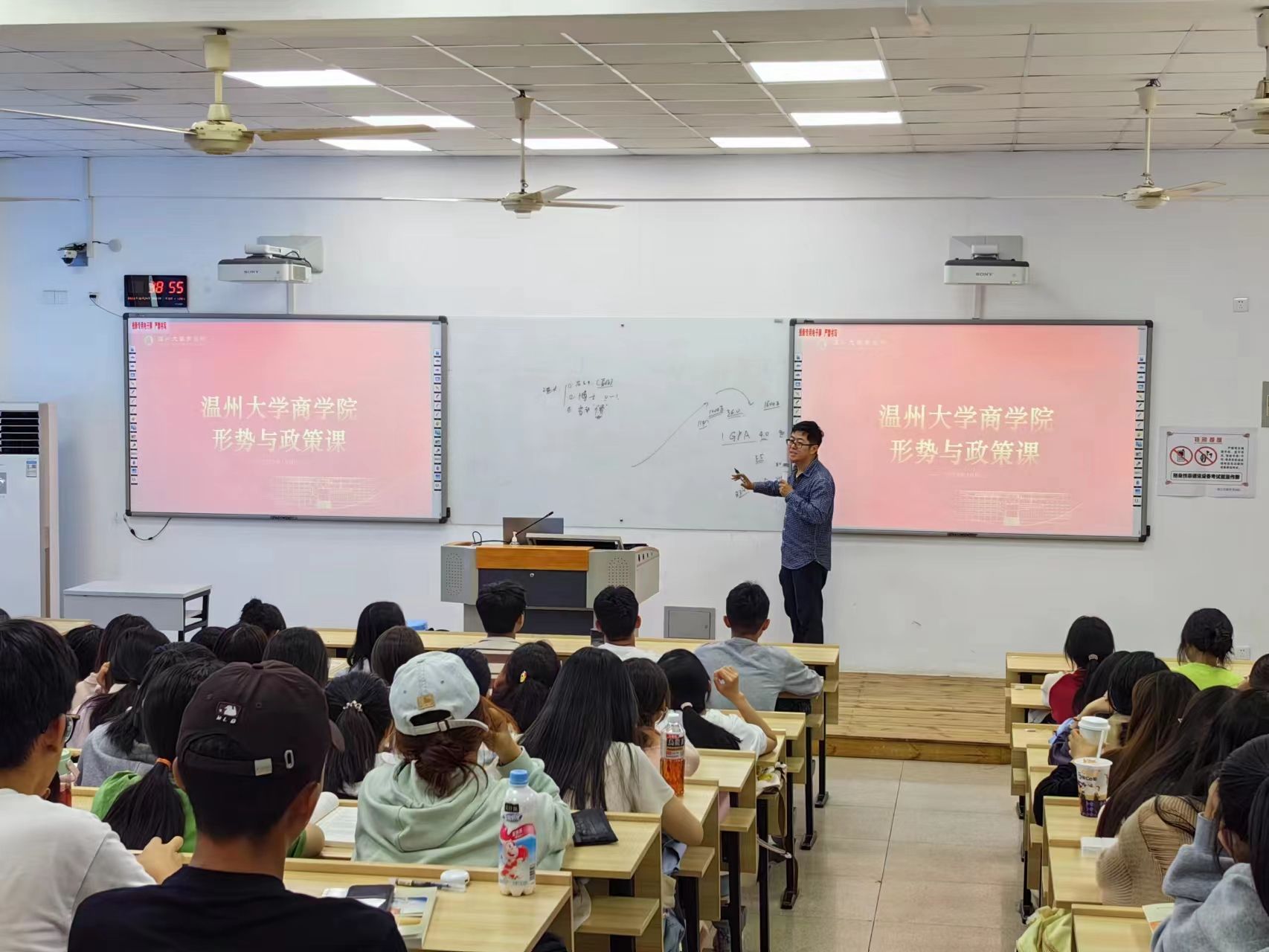 接着,冀晋才博士以“最多跑一次”为引讲述了温州市人民政府数据化,时代化的便民政策。站在改革开放40周年、“八八战略”实施15周年的特殊年份回望,温州经济社会各项事业全面进步,综合实力持续提升,城乡面貌日新月异,人民群众的获得感、幸福感不断增强。这些珍贵的影像让同学们感受时代变迁,描绘未来画卷。也展现温州高度注重民生,抓量保质的实践准则。