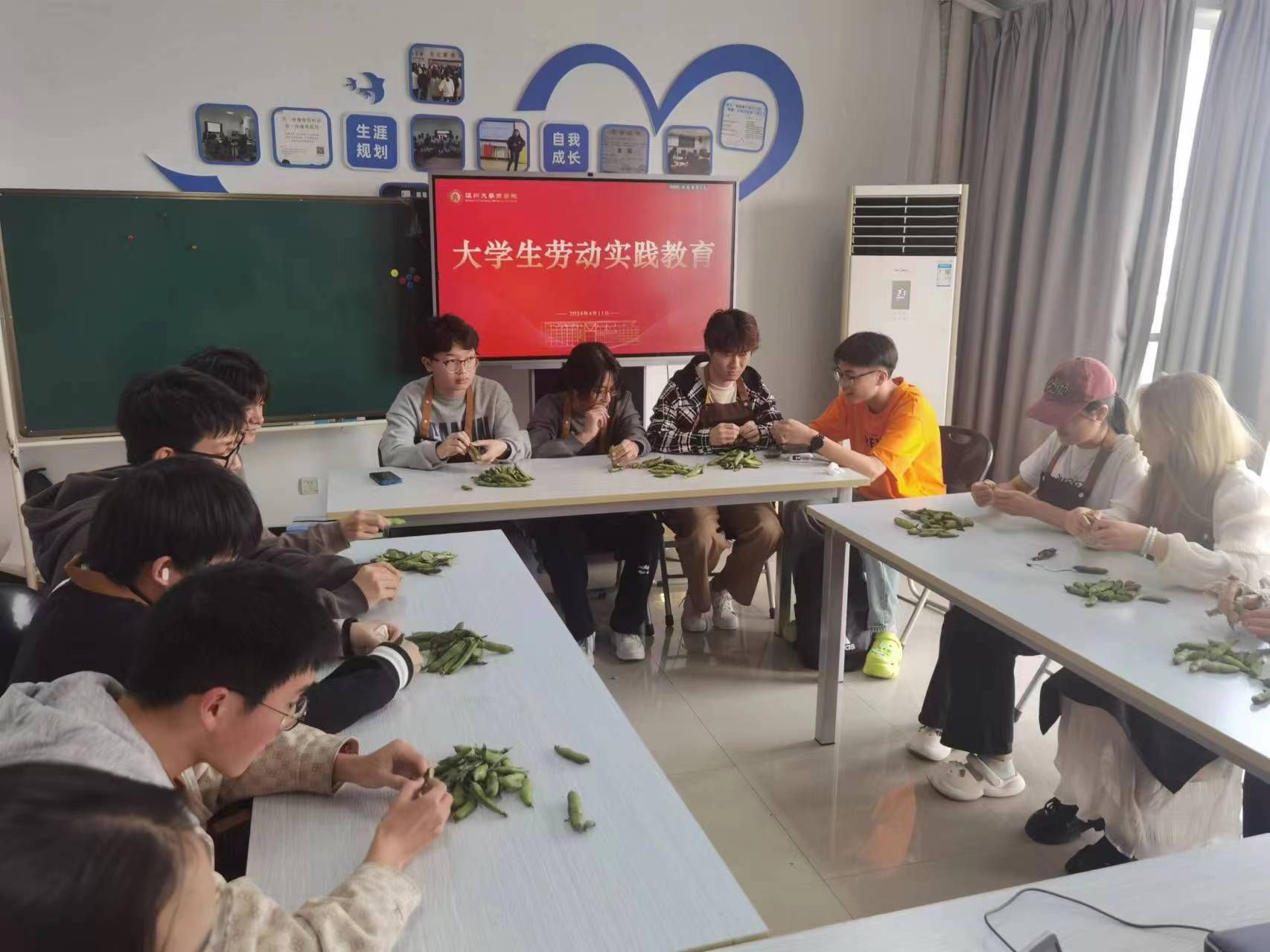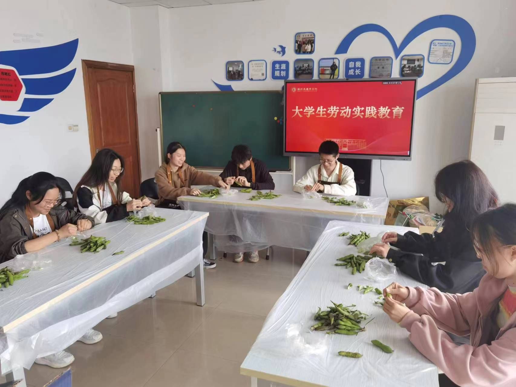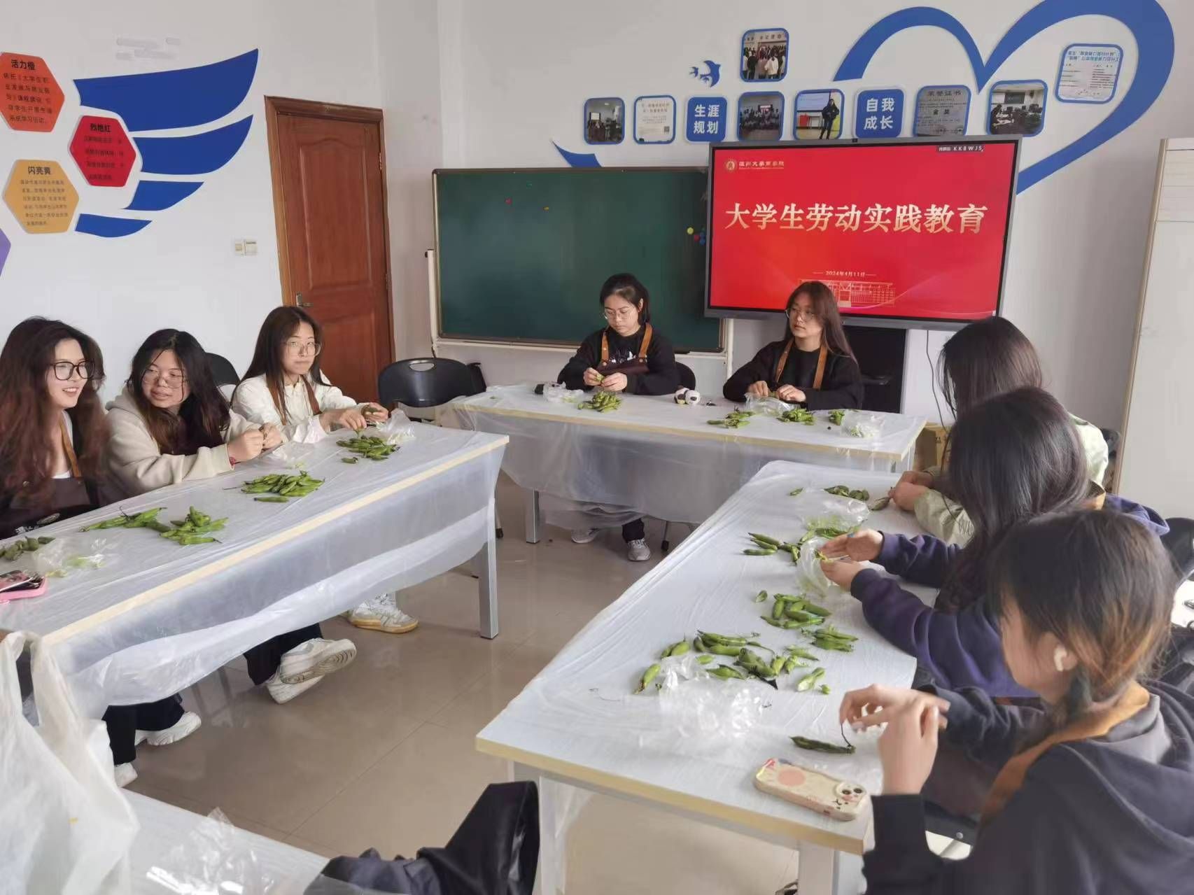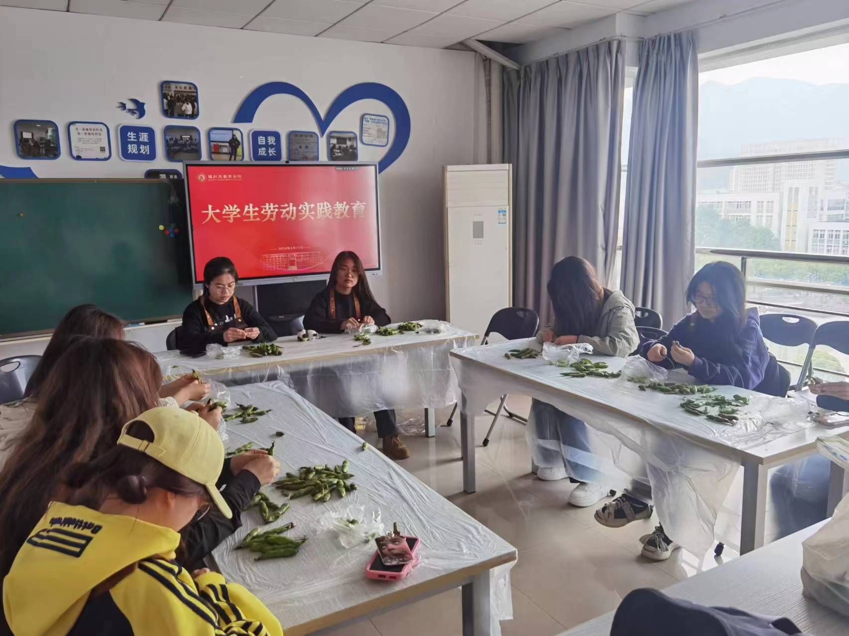 蚕豆是常见的一种豆类蔬菜,春夏交替时,正值蚕豆丰收的季节。4月11日,国贸系同学利用中午时间,开展“剥蚕豆”劳动技能大比拼。