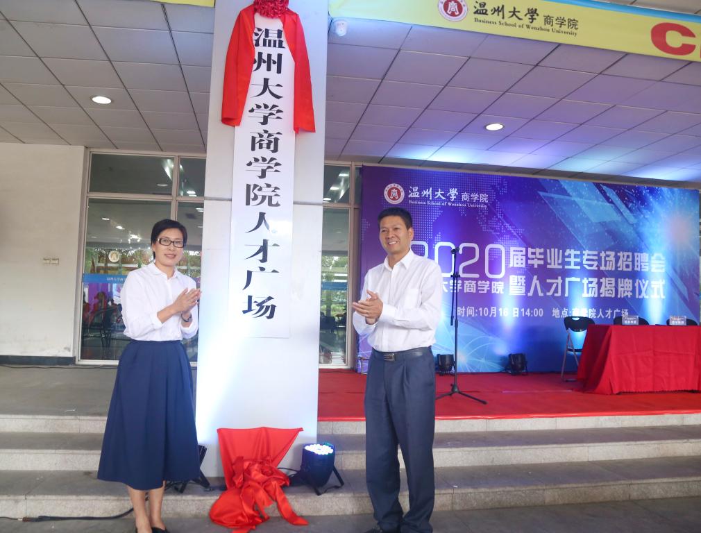 党委书记郑彩莲共同揭牌“人才广场”)