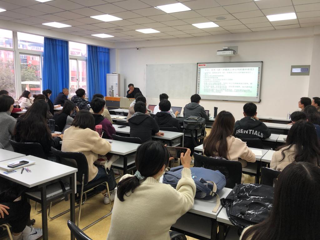 的谢平教授作为本次讲座的主讲人,胡振华院长、郑彩莲书记、程仲鸣老师以及部分研究生到会听讲,教室座无虚席。
