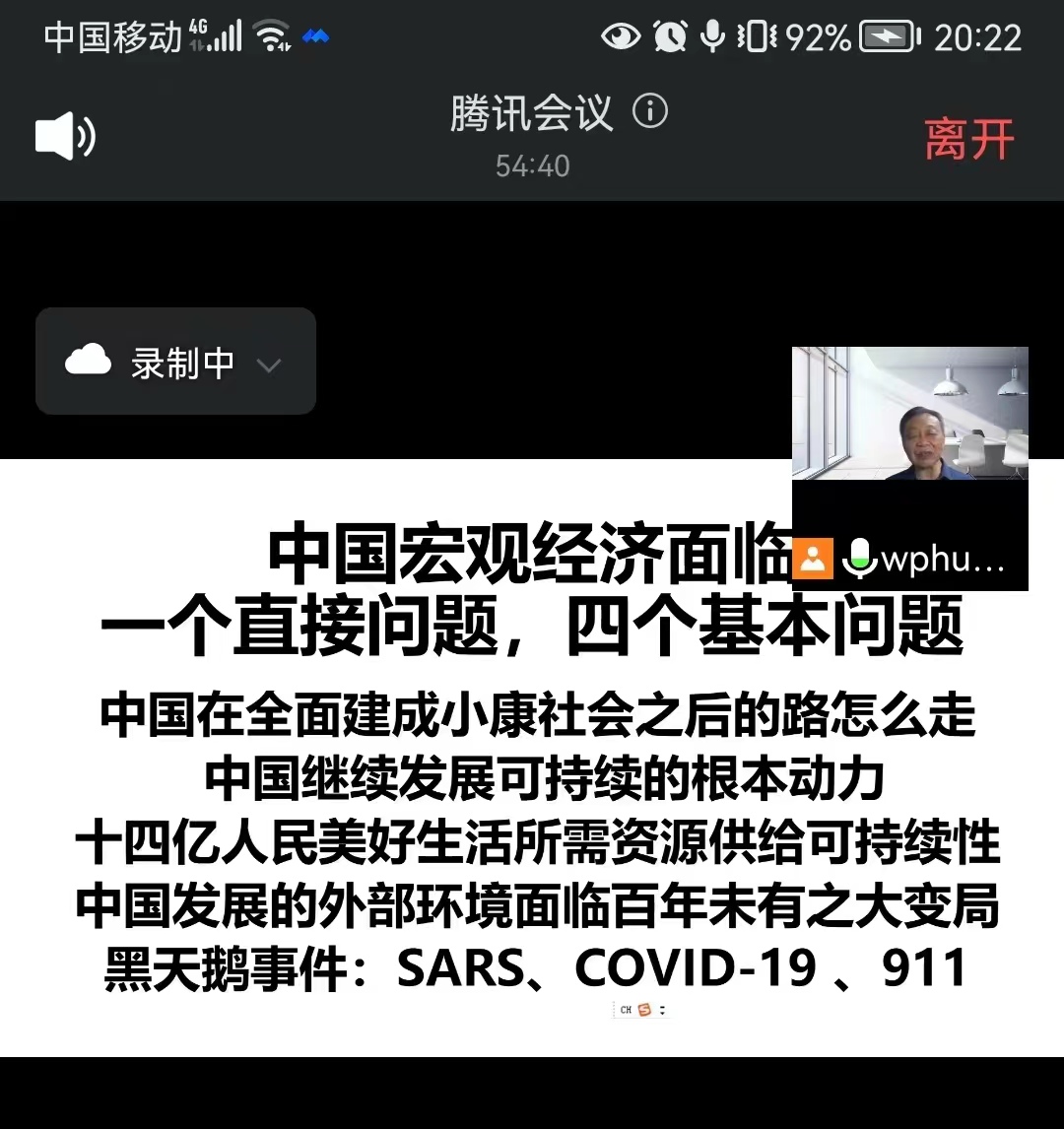 师生、温州大学华人华侨研究学者、特约金融机构高管、中国人民大学世界经济研究中心博士团队、中国人民大学部分校友共计100余人参加了本次线上线下讲座。