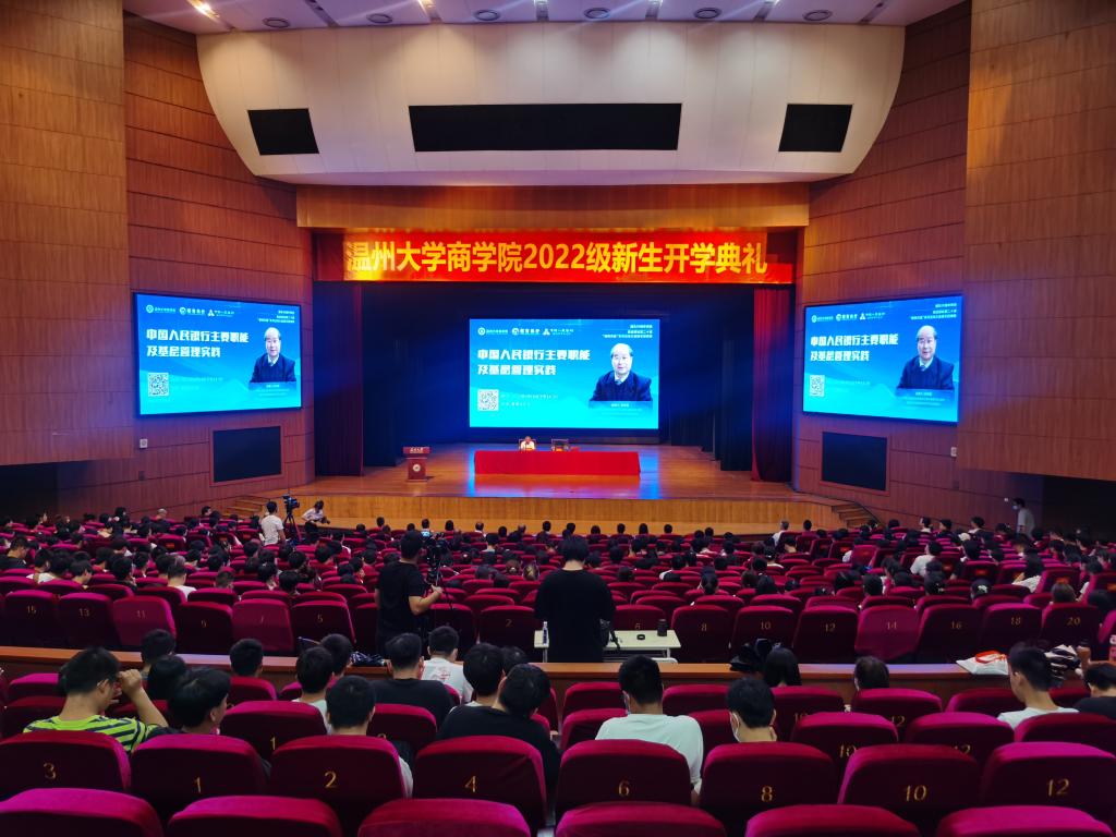 2022年9月14日下午,商道讲坛第二十讲、“银校共建”系列活动之金融专题讲座在育英大礼堂开讲。中国人民银行温州市中心支行党委书记、行长肖宗富带来“中国人民银行主要职能及基层管理实践”专题讲座,招商银行温州分行党委书记、行长袁森,中国人民银行温州市中心支行办公室主任李峰,银河赌场-澳门银河赌场官网