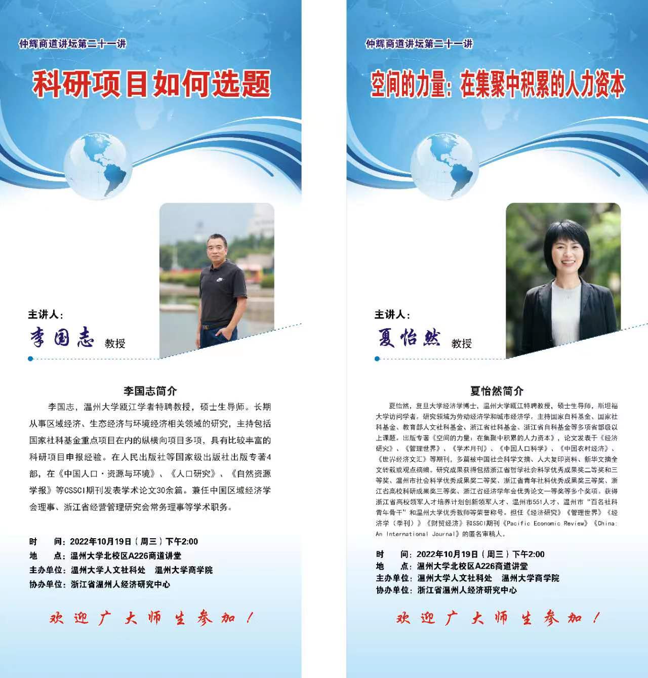 在A226商道讲堂举办国家基金申报经验分享会。会议邀请到获得2022年国家社科基金项目立项的李国志教授和夏怡然教授来和大家分享一下他们在国家级项目申报和研究中所获的心得和经验。