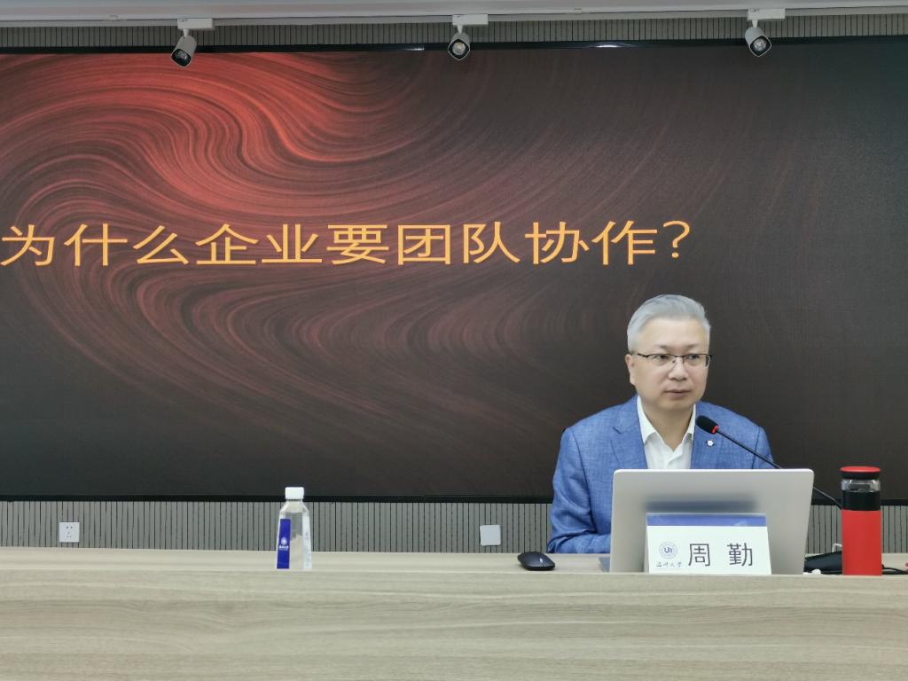 2022年11月16日,商道讲坛第二十三讲在商院楼A226仲辉商道讲堂开讲。我们邀请到广电传媒集团主任记者、影视摄像专业委员会专委、市干部教育培训师资库兼职教师周勤为大家作题为《一个人可能走得更快,一群人可以走得更远——团队协作能力打造》的专题讲座。