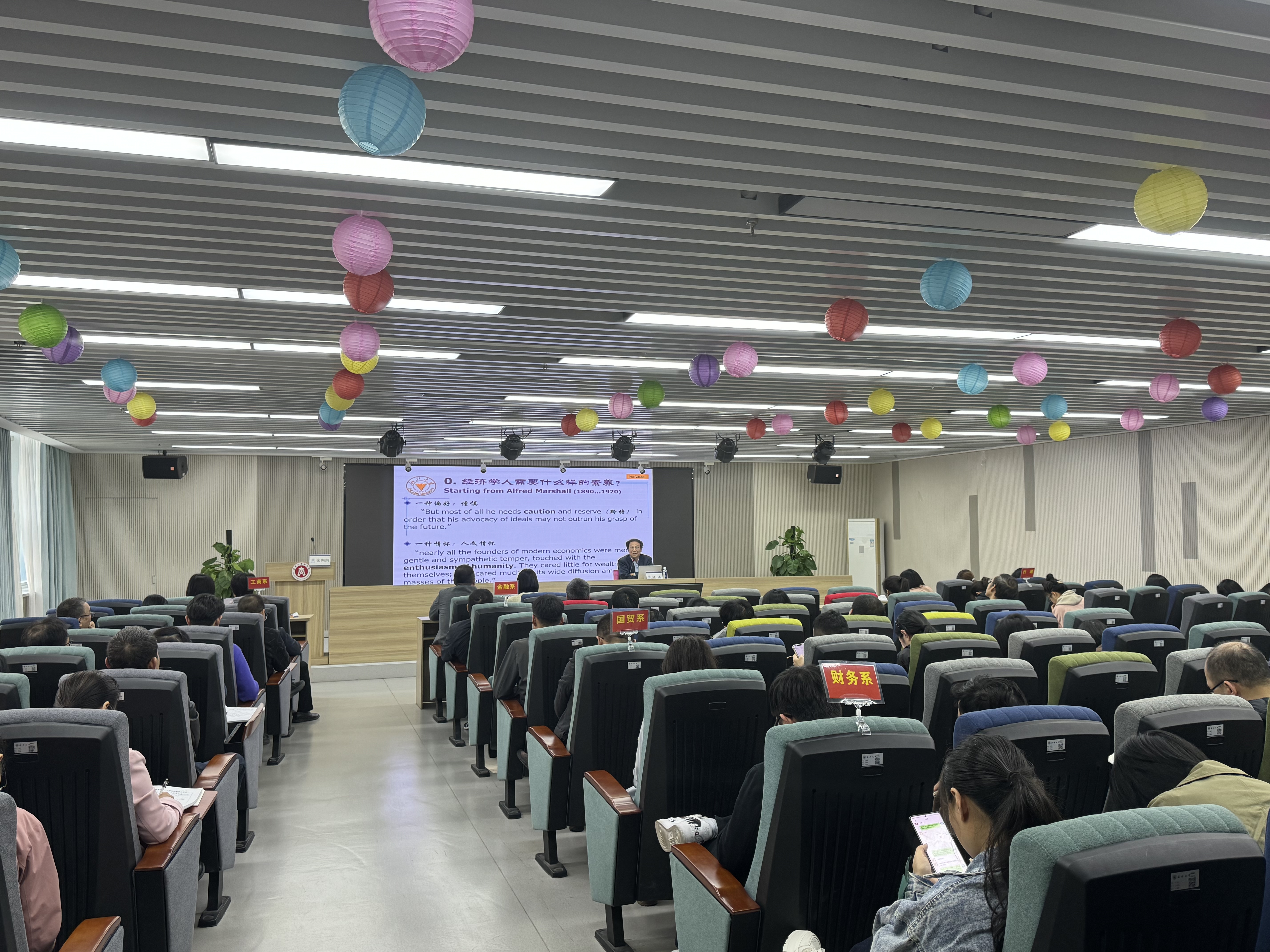 首先,赵伟教授从经济学人所需要具备的素养切入,引出讲座的主题。他认为,作为经济学人,应该具备一种偏好、一种情怀和三种基本能力。接着,赵伟教授结合自身长期阅读、思考和学术研究经验,从什么是经济学前沿、为什么要追踪经济学前沿以及如何把握经济学前沿三个方面,分析了经济学研究者的学术视野与知识构建,并鼓励老师们以新视野、新模型及新实证方法追踪经济学前沿。最后,赵伟教授跟老师们分享了关于哲学与历史的学习体会,强调经济学离不开哲学,希望各位老师能加强哲学和历史方面的阅读,以提高逻辑思维能力。讲座结束后,赵伟教授还对老师们的提问一一做了解答。