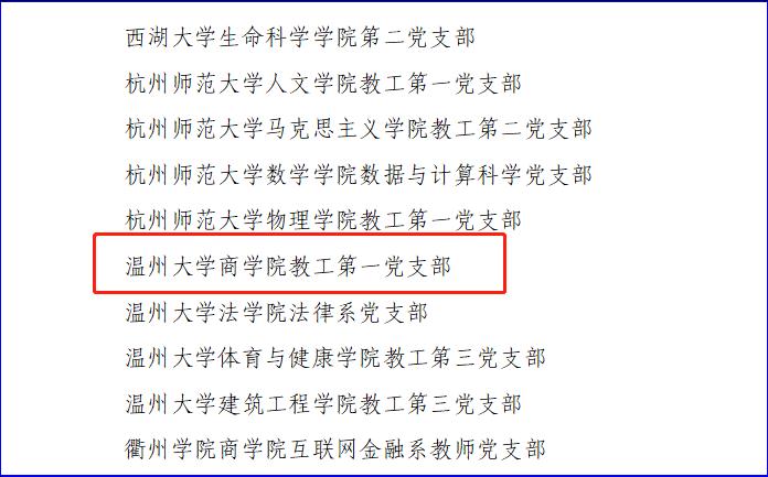 根据《中共浙江省教育厅委员会办公室关于开展第二批全省高校党建“双创”工作和做好全国第三批“双创”项目推荐的通知》(浙教党办函〔2021〕33号),经资格审查、专家遴选、厅党委会研究,遴选产生10个高校党委、81个院系党组织、153个党支部分别作为省级党建工作示范高校、标杆院系、样板支部培育创建单位。我院教工第一党支部入选浙江省第二批“全省党建工作样板支部”培育创建单位。