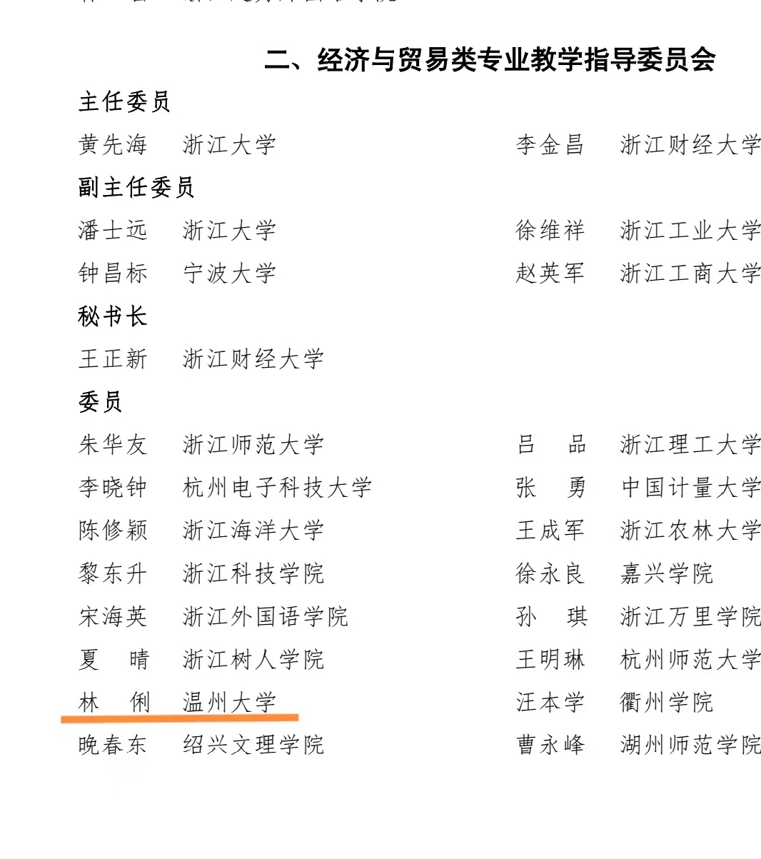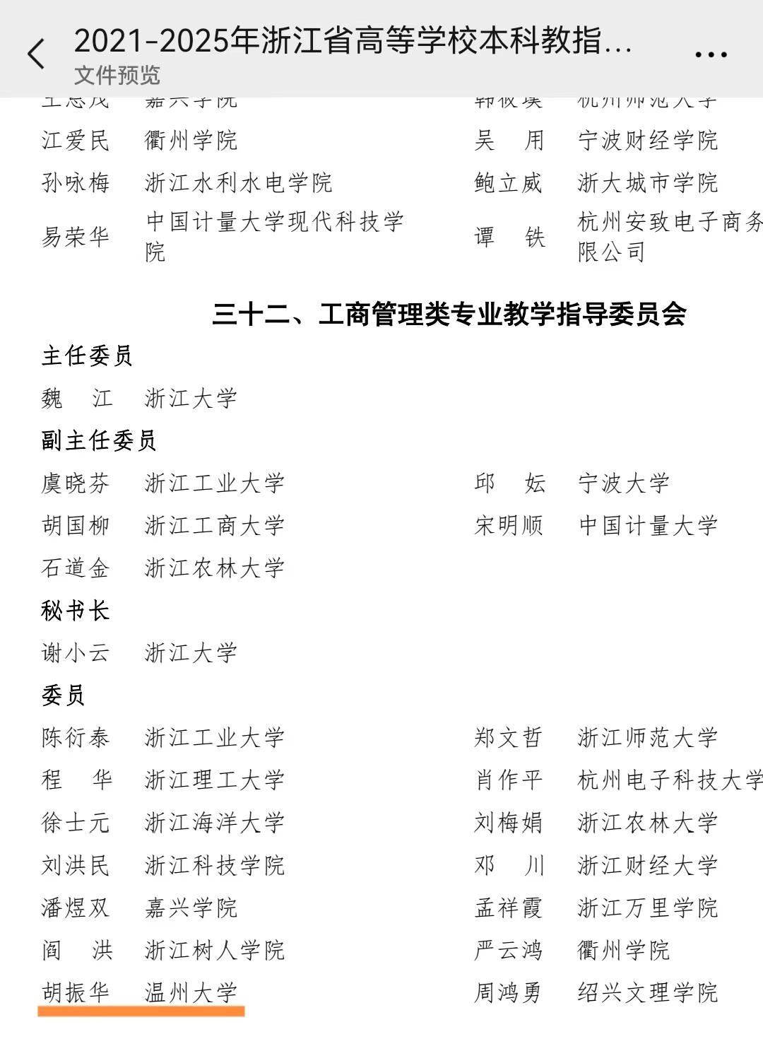 我院胡振华、罗建利、林俐、何旭艳四位教授出任2021-2025年浙江省教指委委员。