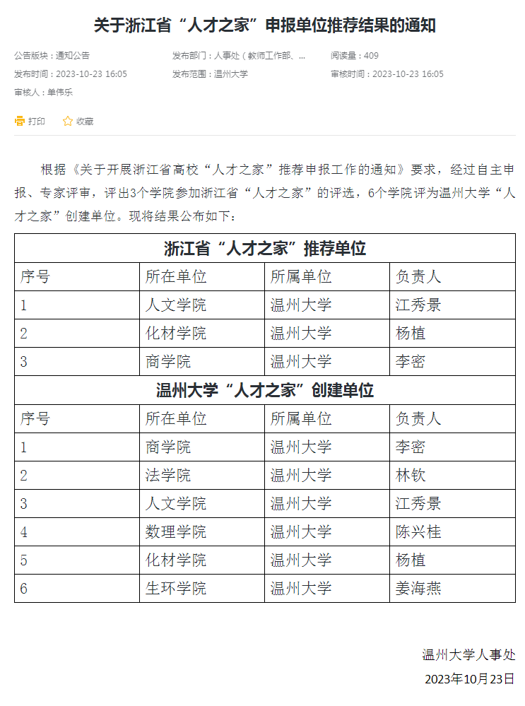 【喜报】银河赌场 “人才之家”被评为温州大学“人才之家”创建单位