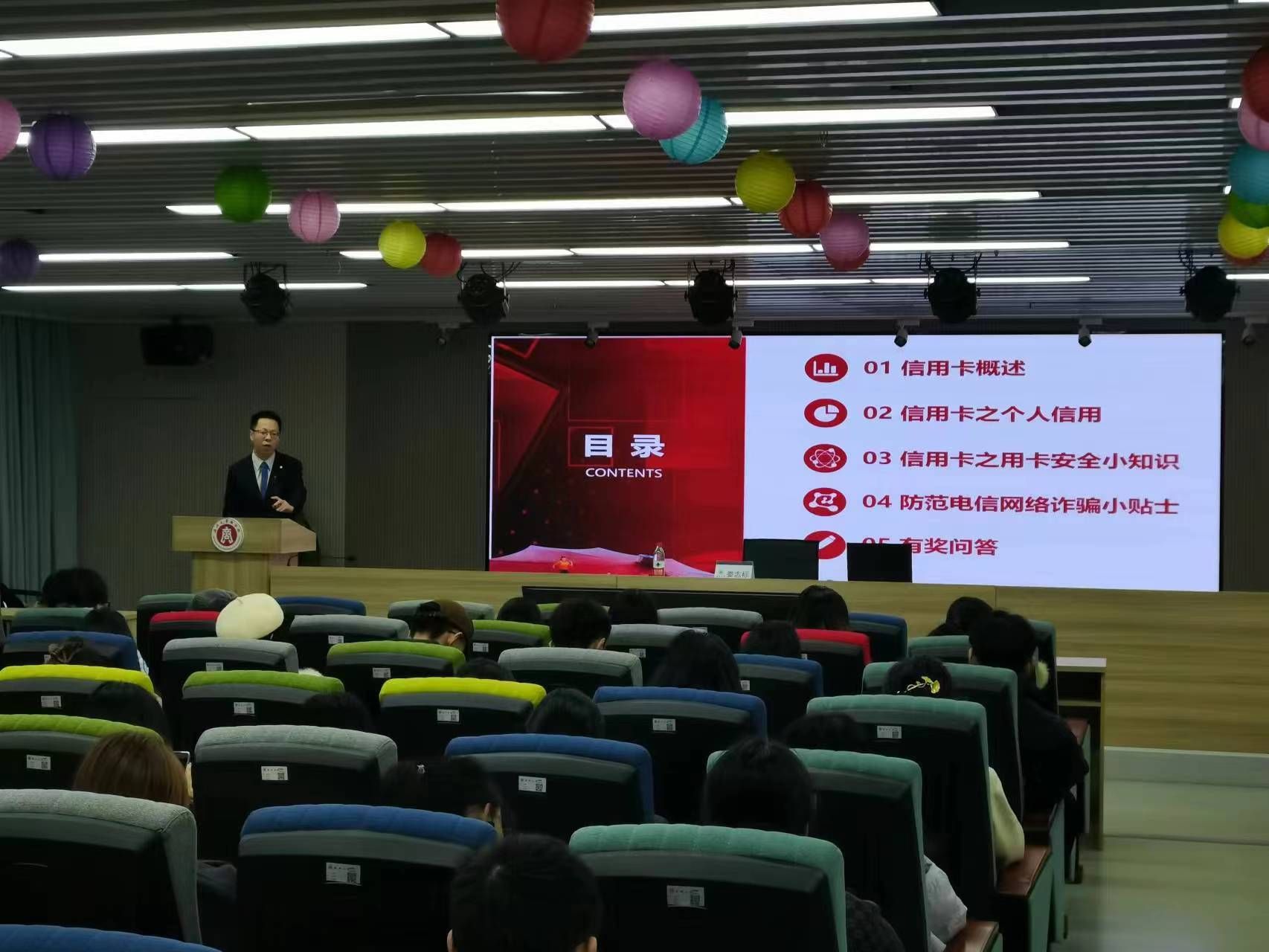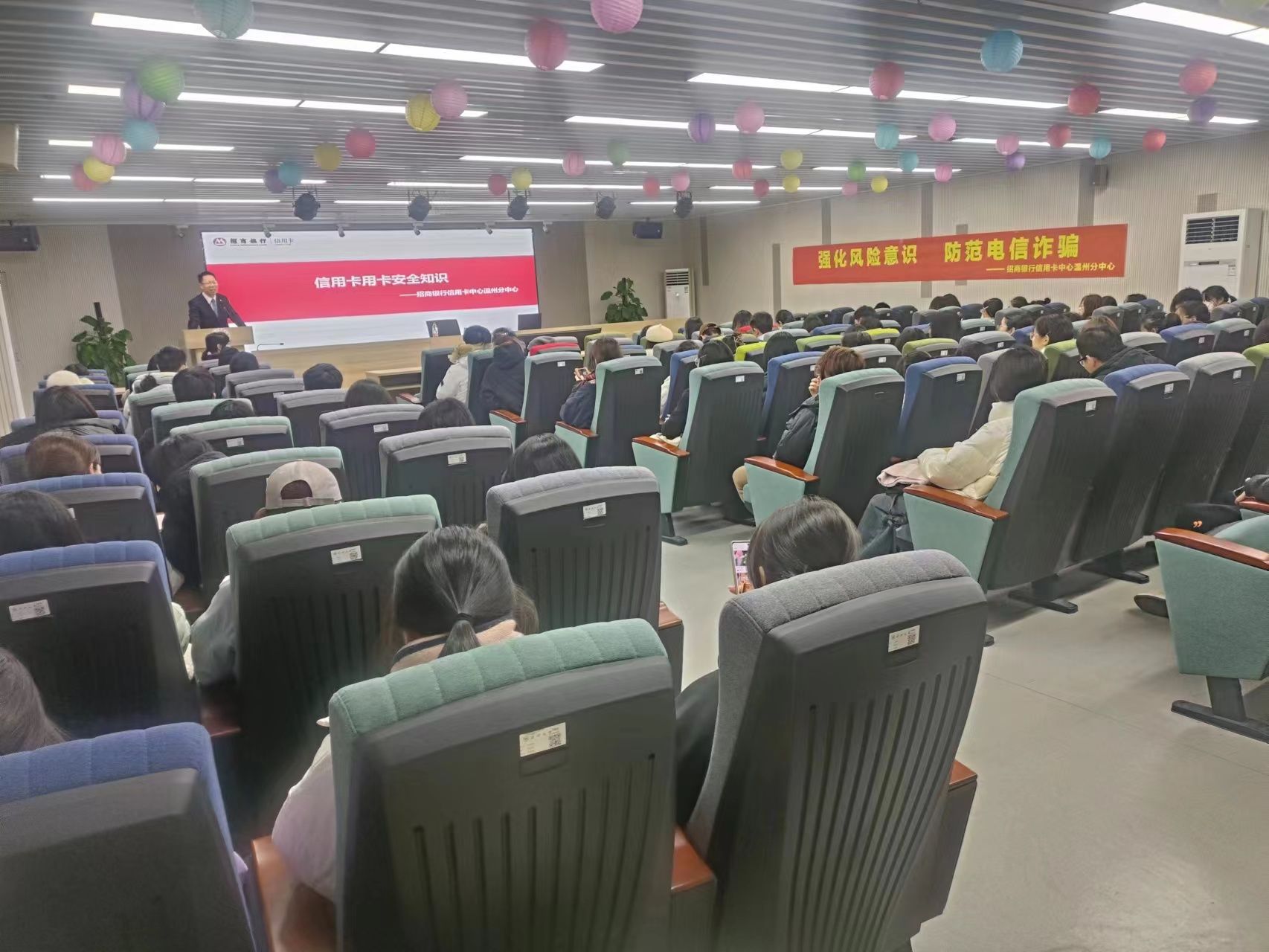 为增强同学们对信用卡用卡安全知识的了解,努力营造安全健康的校园氛围,2023年12月20日晚,招商银行信用卡中心温州分中心总经理助理娄志标讲师为同学们作“信用卡用卡安全知识”专题讲座。讲座由金融知识宣教协会主办。