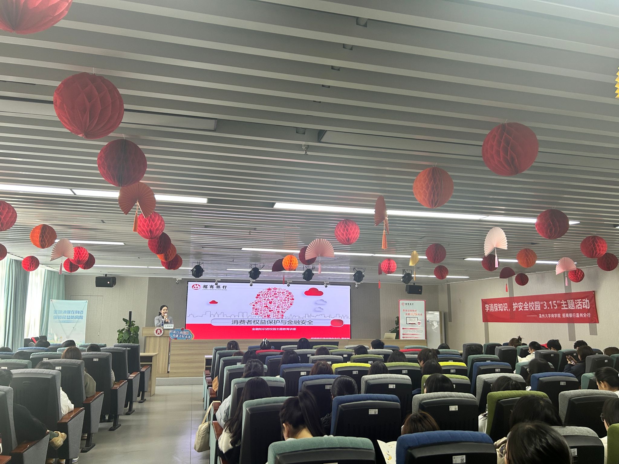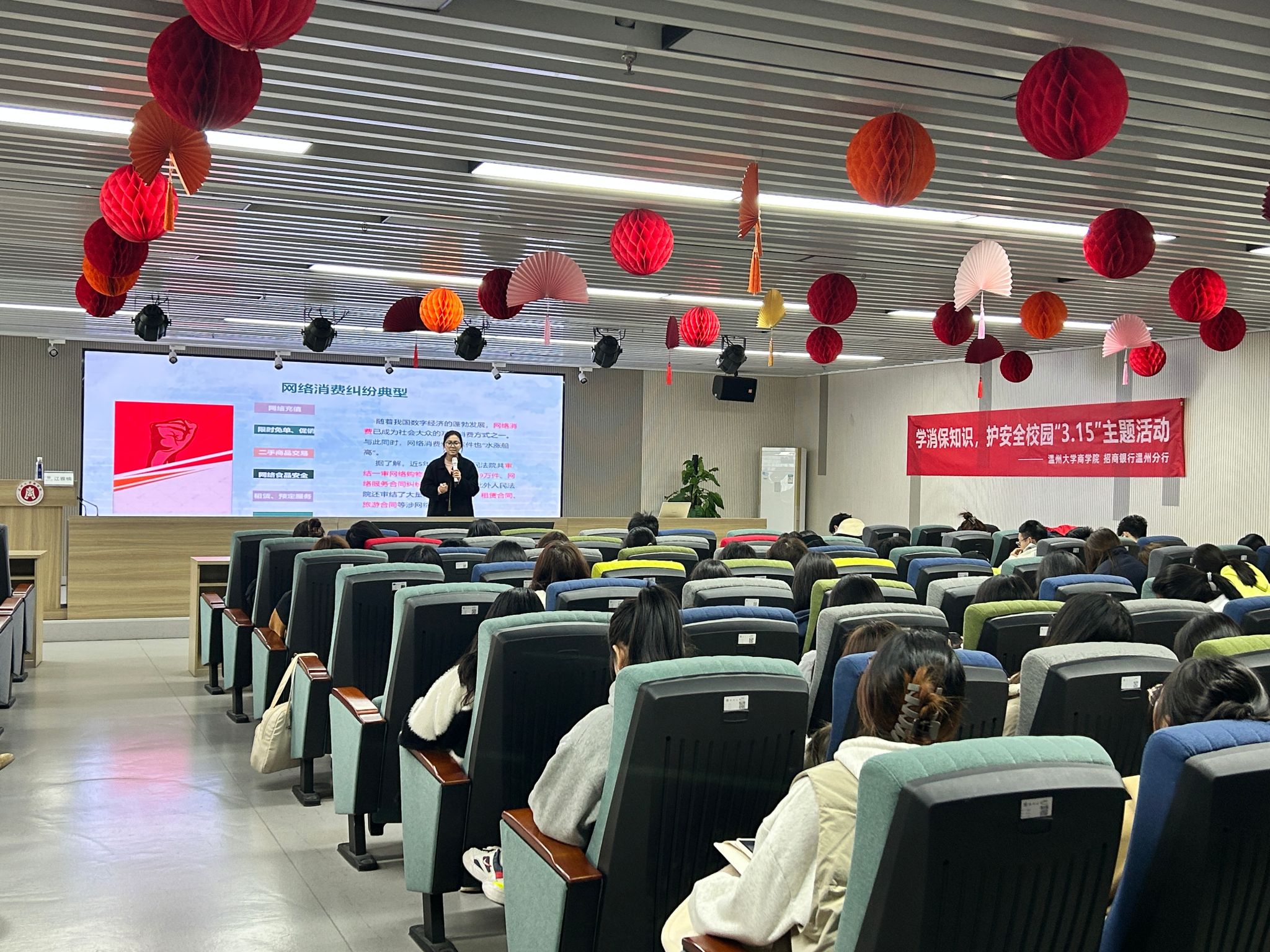 协会邀请招商银行温州分行的金融讲师为学生开展消费者权益维护专题讲座。讲座从《消费者权益保护法》的立法背景、《消费者权益保护法》的重要制度、消费者权益保护中的常见的问题以及消费者的权利保护四个方面展开,通过具体的案例向同学们科普相关法律知识,在面临相关事件时的应对措施、处理方法及注意事项等。