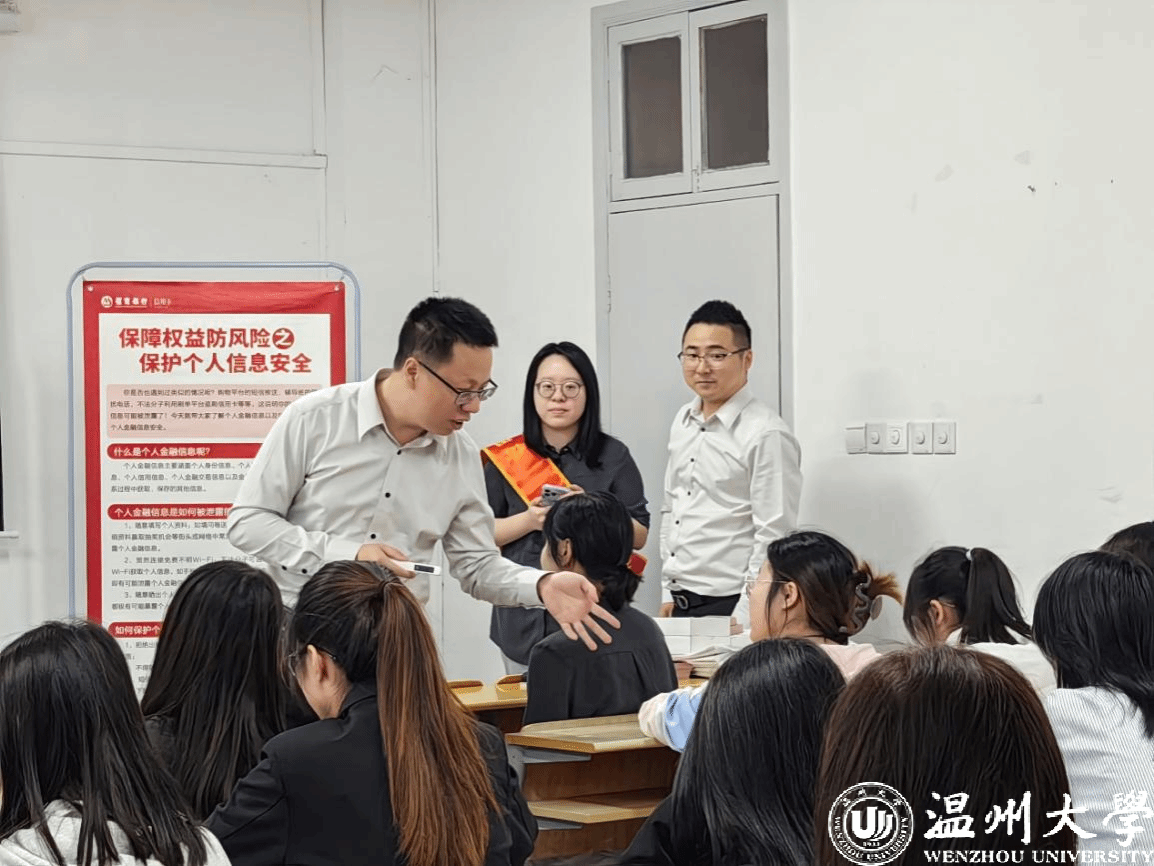 为进一步宣传金融安全知识,提高防范意识,帮助当代大学生树立正确消费观念,预防潜在的校园信息及信用卡安全,2024年10月23日下午,温州大学金融知识宣教协会邀请了招商银行温州分行的讲师麻诗瑾、娄志标为同学们带来专题讲座“校园生活中的个人信息保护”和“信用卡应知小知识”。