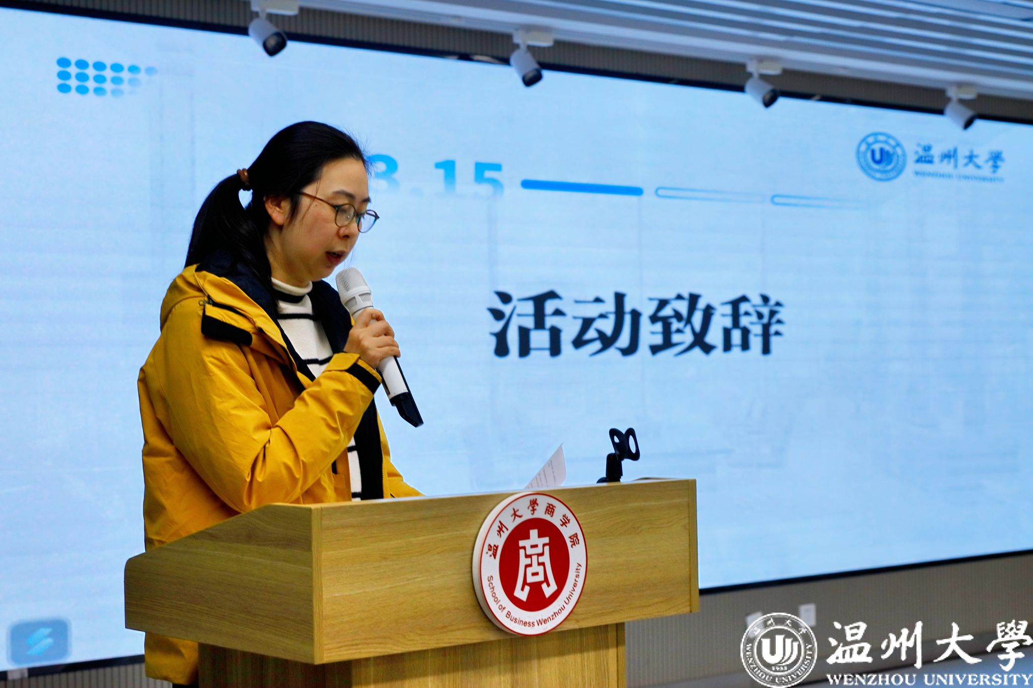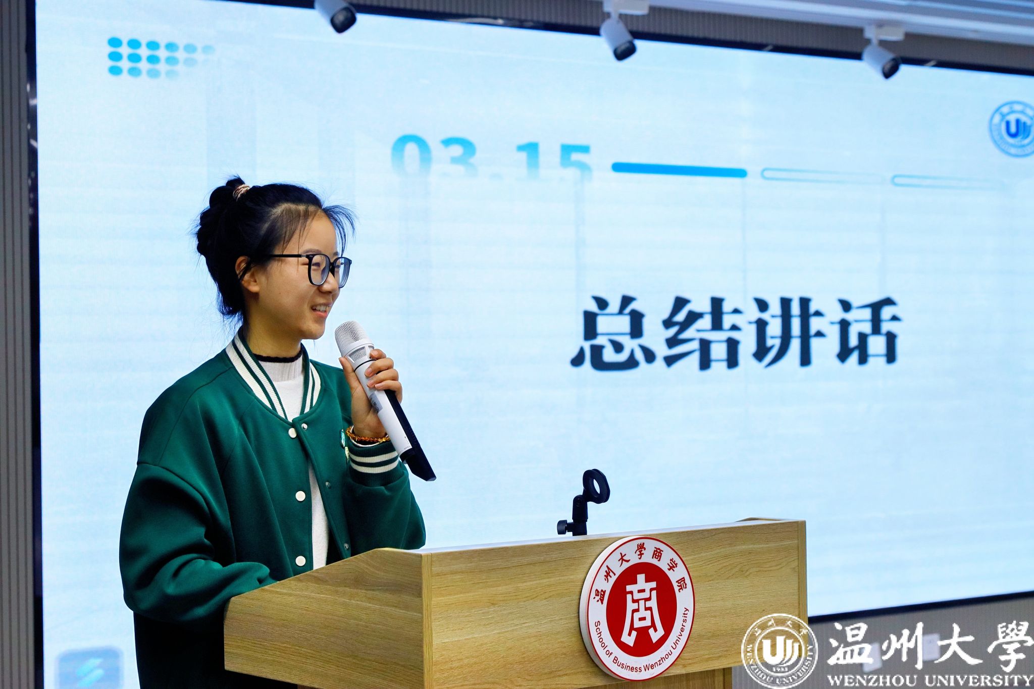 最后,温州大学金融知识宣教协会指导老师聂海燕作总结讲话。她对本次活动的成功举办表示肯定,对参与活动的老师、嘉宾和同学们表示感谢,并再次强调了金融安全和消费诚信的重要性,呼吁同学们将所学知识运用到实际生活中,共同守护校园金融安全。