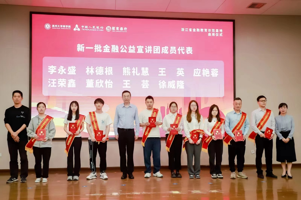与招商银行温州分行在温州大学北校区信息楼报告厅隆重举行浙江省金融教育示范基地的启用仪式。中国人民银行温州市中心支行党委委员、副行长宋征威,招商银行温州分行党委书记、行长袁森,温州大学团委书记易招娣,温州大学保卫处副处长钱合激,银河赌场-澳门银河赌场官网