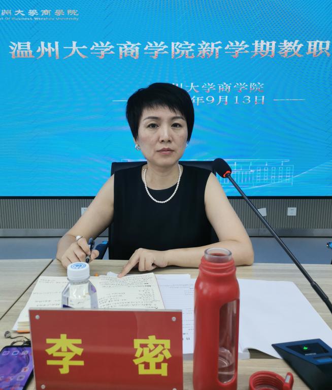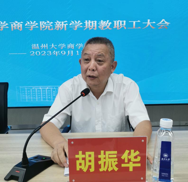 胡振华院长在会上讲话,他首先提醒大家尽快将状态转为上班模式,然后对新学期主题教育、人才培养、学科科研、社会服务、文化传承等重点工作做出部署。他强调大家要珍惜教师这份职业,爱岗敬业,结合自身经验讲述如何做好一名教师并给予大家建议,他指出大家要保持学习和研究,不断积累,教学求生存,科研求发展,做好职业整体规划并坚持不懈。