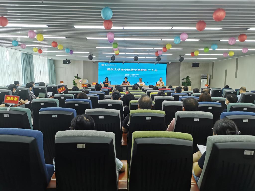 在商院楼A226仲辉商道讲堂举行新学期全院教职工大会,为新学期工作谋篇布局。会议由银河赌场