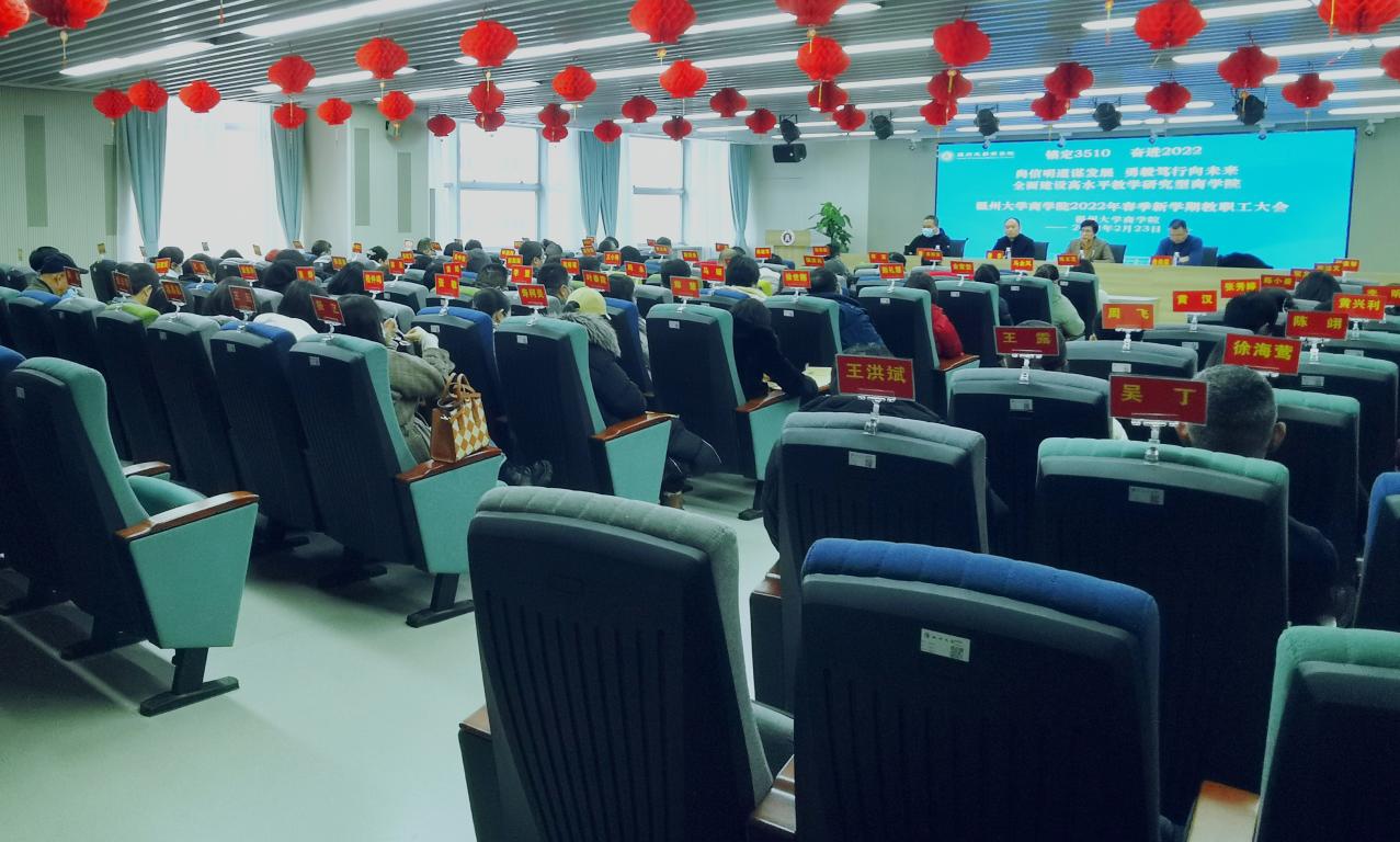 在商院楼A226仲辉商道讲堂召开2022年春季新学期教职工大会,为新学期工作谋篇布局。会议由银河赌场