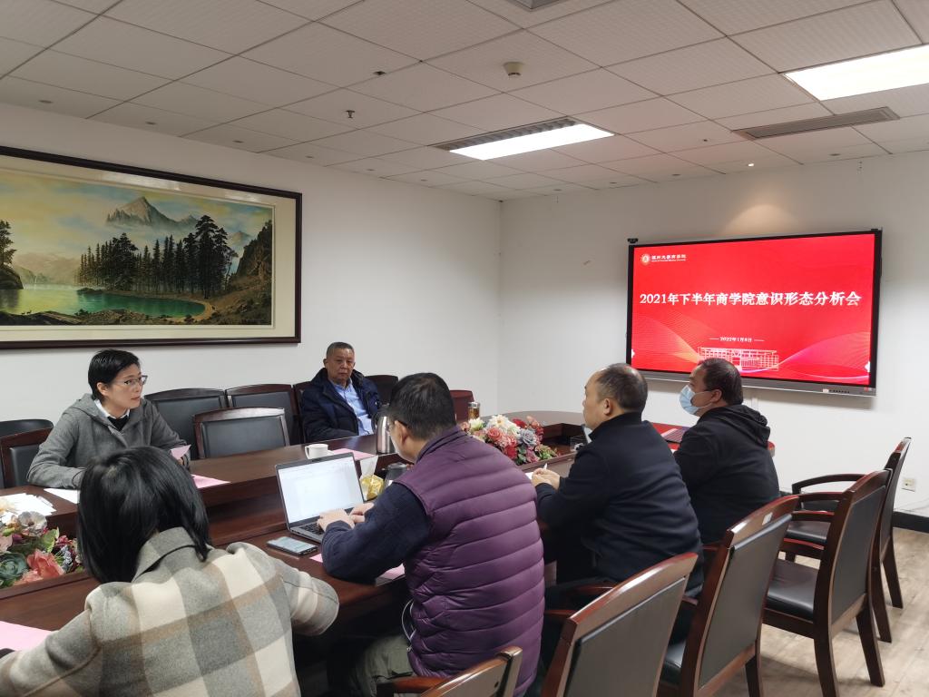为了更好地贯彻落实“党要管党、从严治党”政治责任,深入推动意识形态工作与教学、科研、管理等各项工作相融合和《温州大学意识形态工作责任制实施办法》的要求,加强和改进党对意识形态工作的领导,根据校党委《温州大学关于在二级单位实行领导班子党风廉政建设情况分析会制度的通知》精神,我院党委于2022年1月8日上午召开2021年下半年意识形态工作分析会,分析会由党委书记郑彩莲主持,院长胡振华、副书记唐华、副院长余向前等出席,纪委委员兼支部书记龚军姣列席了分析会,温州大学党委副书记庄兴忠全程参加指导会议。