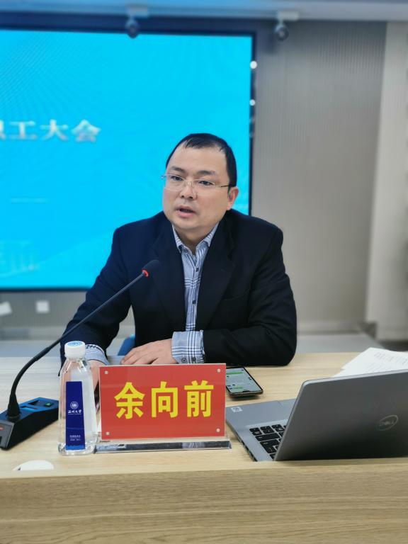 余向前副院长回顾了今年的课程建设与教学工作取得的丰硕成果,并对当前疫情形式下的教学工作、期末考试工作、四六级考试工作以及下学期教材征订等工作做出部署。