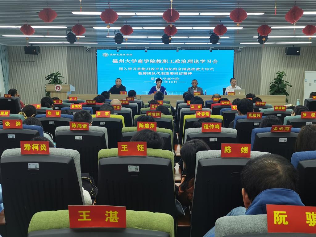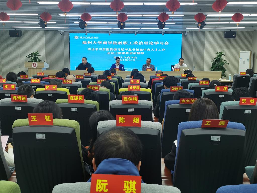 在信息楼A226仲辉商道讲堂举行教职工理论学习大会学习习近平总书记给全国高校黄大年式教师团队代表重要回信精神和习近平总书记在中央人才工作会议上的重要讲话精神。全体教职工参加学习会,会议由银河赌场