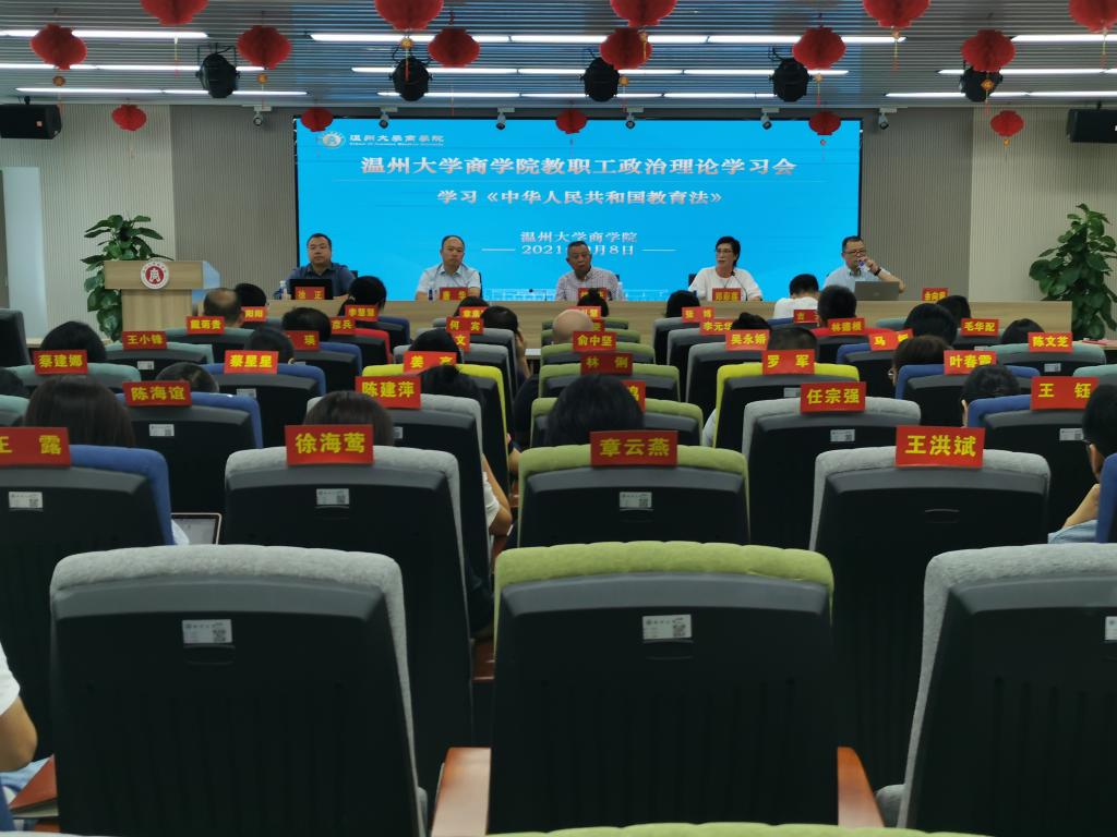 在仲辉商道讲堂组织学习新修订的《中华人民共和国教育法》,与党史学习教育相结合,做好新修订的教育法的学习宣传和贯彻实施工作,提高全体教职员工的政治站位和师风师德修养。银河赌场