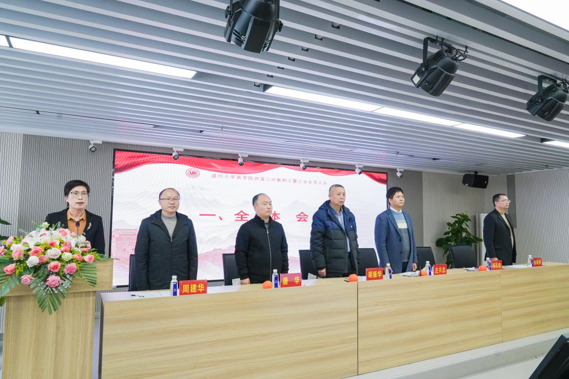 2021年,是“十四五”良好开局之年,也是温州大学办学历史中极为关键的一年,更是银河赌场 历史上具有里程碑意义的一年,温州大学成功申博,银河赌场 金融工程、国际经济与贸易成功立项国家一流专业,各项事业取得了高质量发展。旧岁已展千重锦,新年正待谱新篇,2022年1月6日上午,银河赌场 在北校信息楼A226仲辉商道讲堂隆重召开第四届教职工暨工会会员大会第三次会议,回顾总结2021年工作,部署2022年目标任务。温州大学党委委员、副书记庄兴忠应邀出席,银河赌场 全体教职工参加会议,会议由银河赌场 党委书记郑彩莲主持。