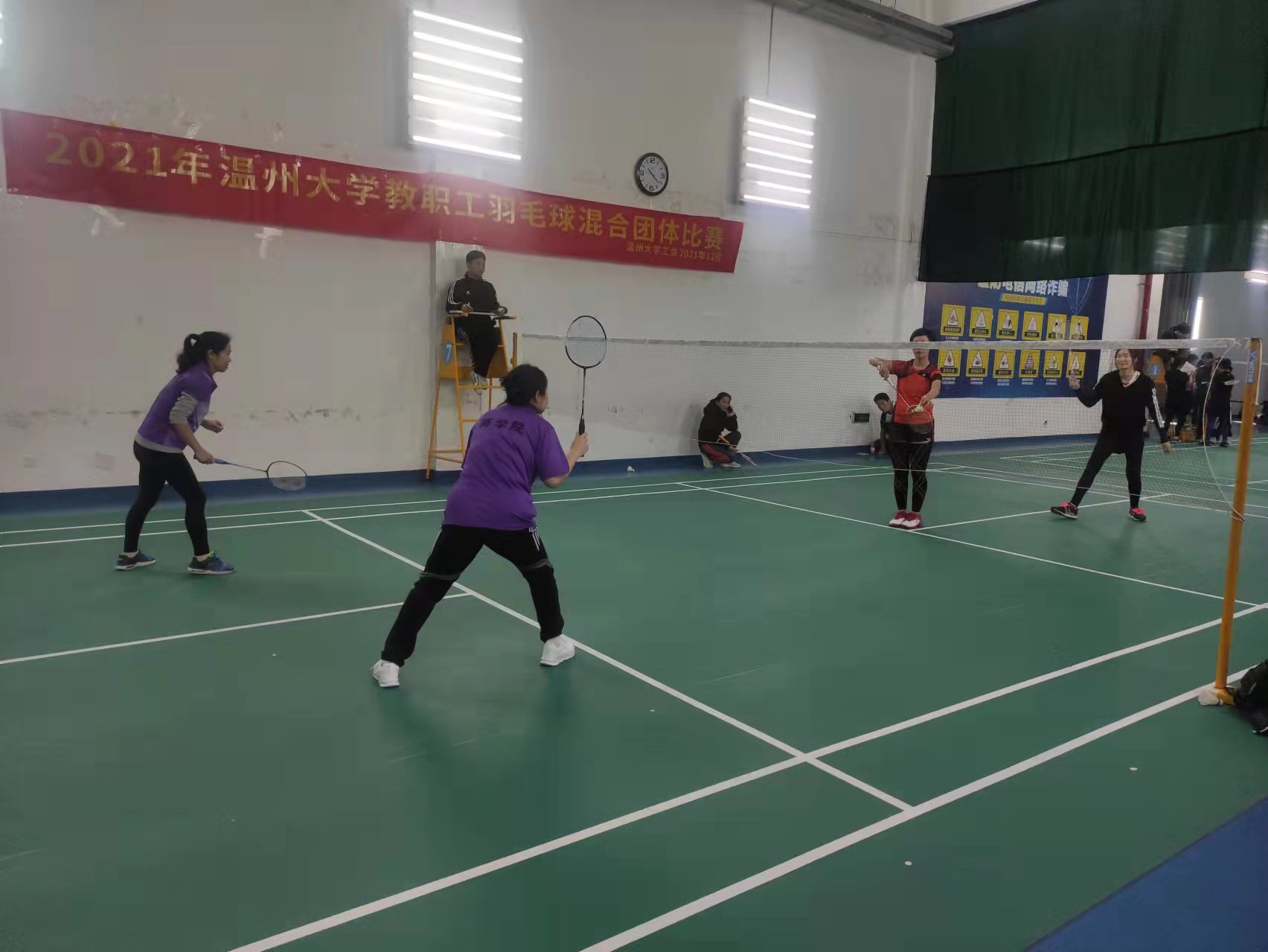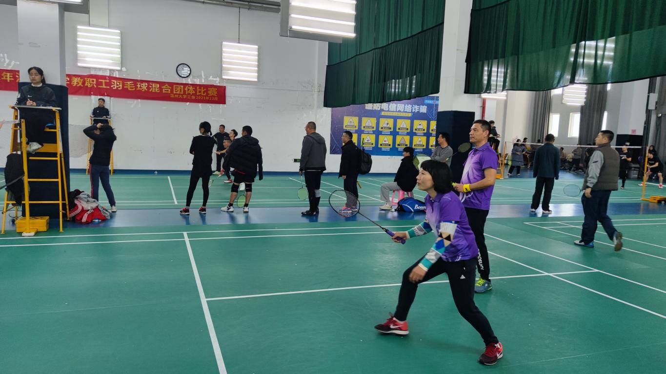 12月4日至5日,由校工会举办的2021温州大学教职工羽毛球混合团体赛在南校区体育馆二楼羽毛球馆顺利举行,我院11名教职工参加了比赛。